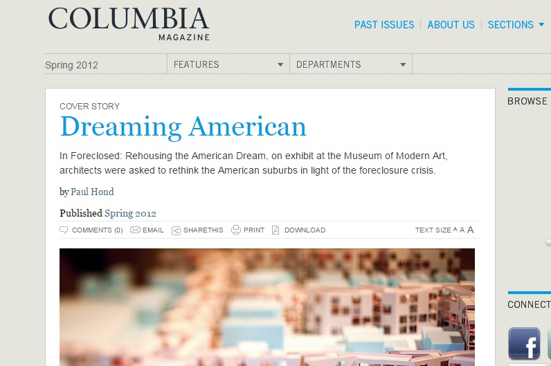 De in 2012 door het MOMA gepresenteerde show Foreclosed: Rehousing the American Dream is een buitengewoon instructief en enerverend voorbeeld hoe een dergelijke samenwerking tussen wetenschappelijk onderzoeksinstituut, ontwerpbureaus en museum, in de praktijk functioneert. De hier beproefde aanpak maakt bovendien duidelijk waarom het Buell Center zich in 2014 genoodzaakt voelde om, weliswaar ongevraagd, een bijdrage te leveren aan de Architectuur Biënnale in Venetië (zie vorige blog).